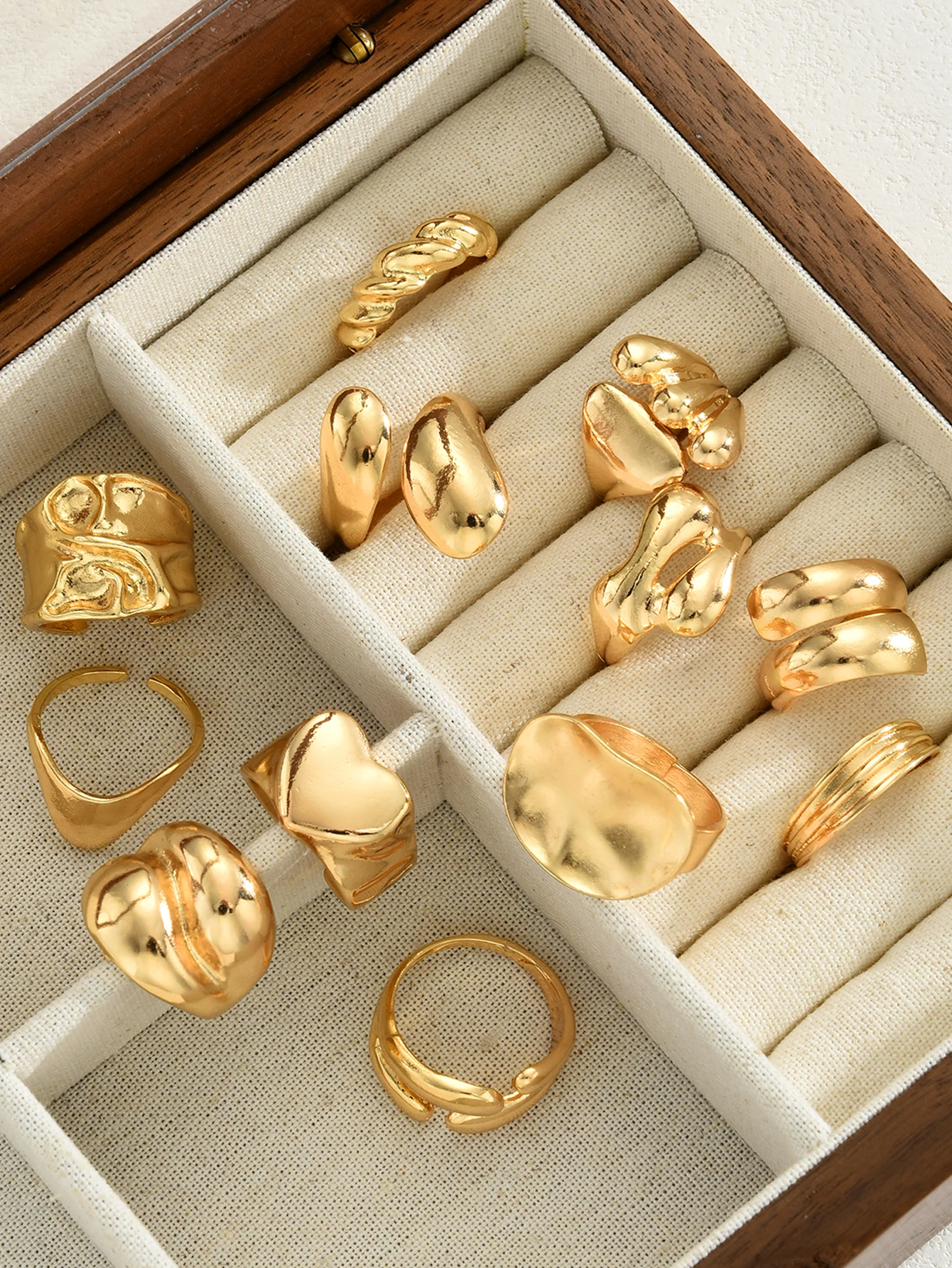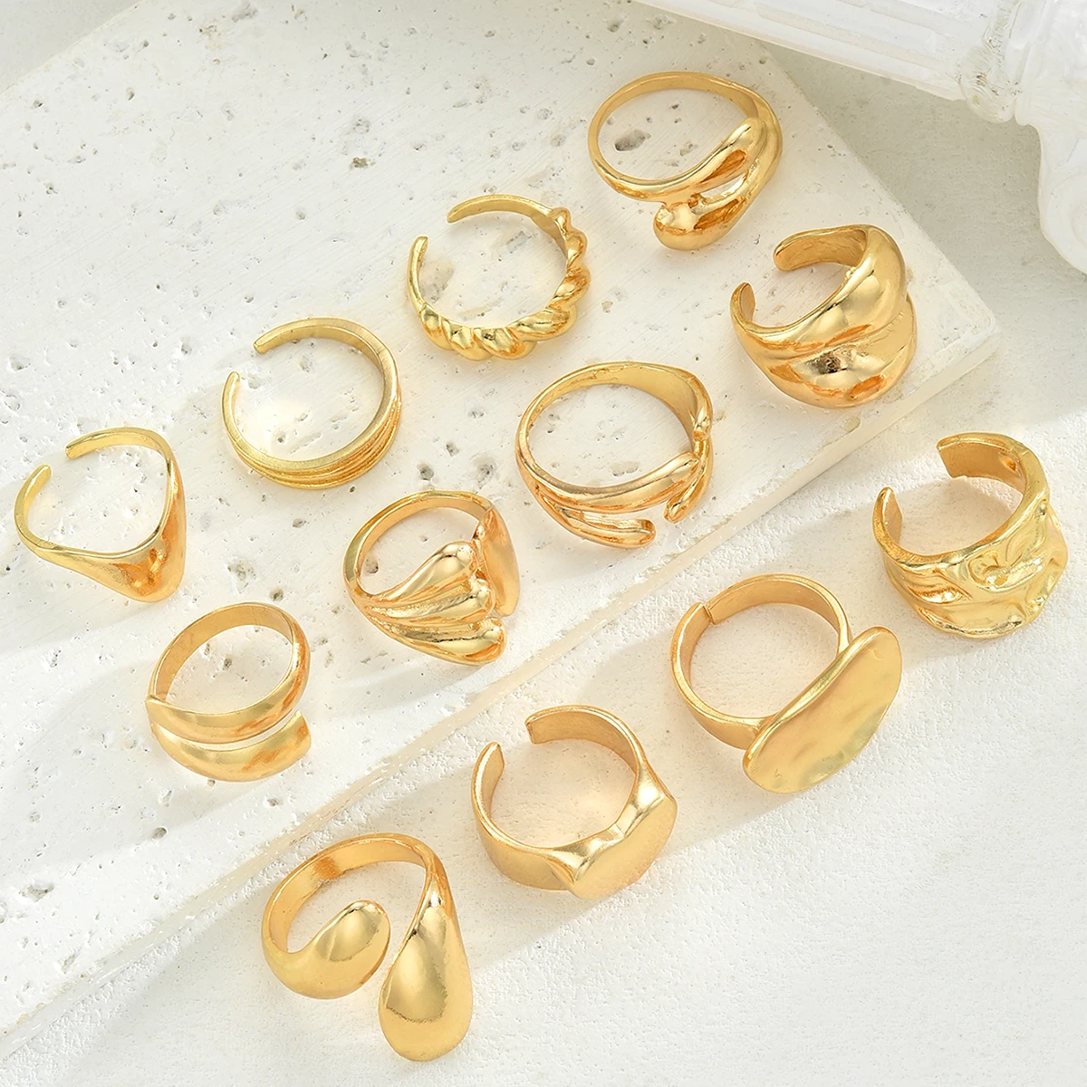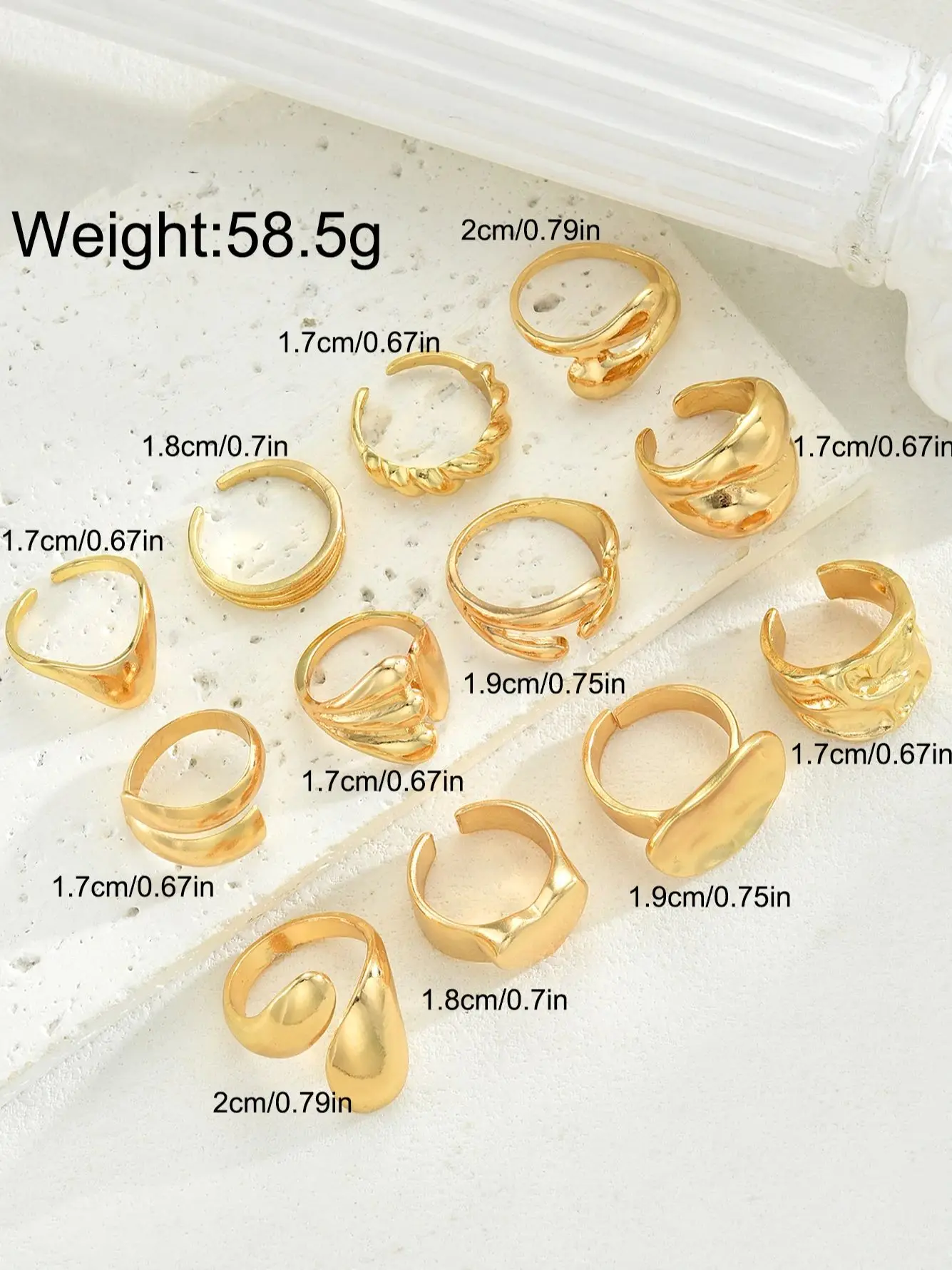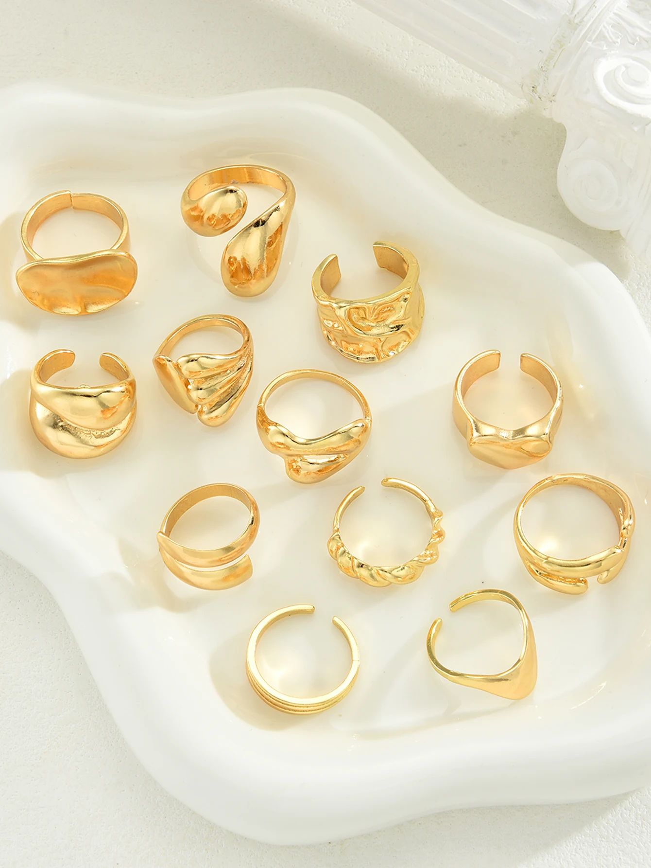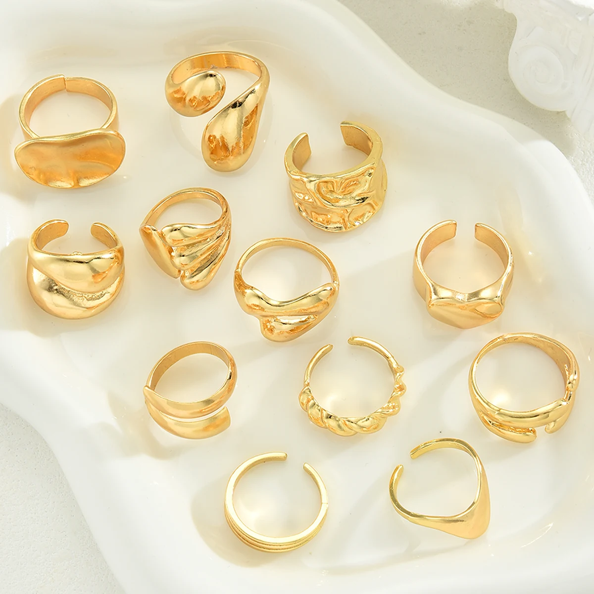 12Pcs Gold Color Lava Texture Ring Set For Women Chunky Statement Irregular Heart Teardrop Stackable Rings Minimalist Jewelry