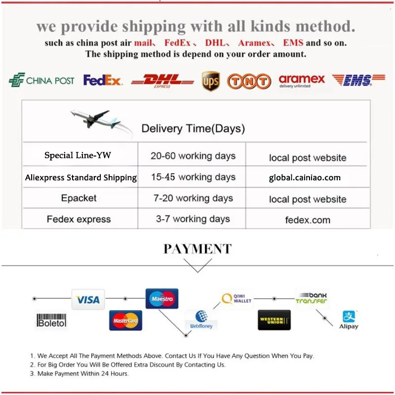 AliExpress, Cainiao, and Yanwen shipping methods are still available to all over the world. We could send in 1-3 days.